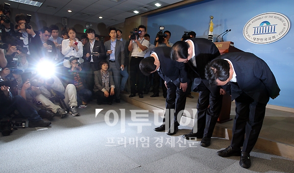 [포토]고개숙인 민주노동당 전 당대표 3인