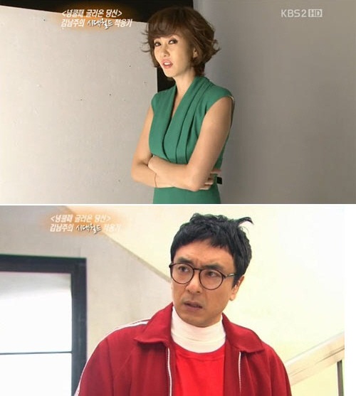 김남주는 19일 방송된 KBS 2TV `연예가중계`에서 김승우도 방귀남과 비슷하게 다정다감하지만 스킨쉽은 소극적이라고 말했다.