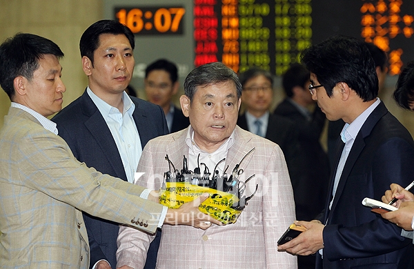 이건희 삼성전자 회장이 24일 오후 3주간의 유럽출장을 마치고 김포공항을 통해 입국하고 있다. 이 회장은 기자들의 질문에 유럽 경제상황이 "생각 했던거 보다 조금 더 나빴다" 고 말했다.