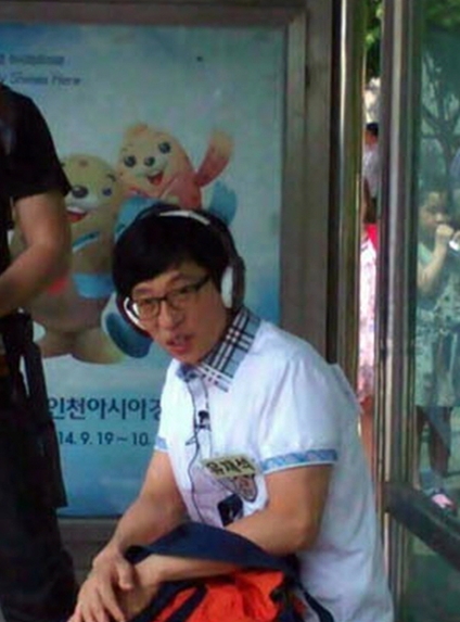 공개된 사진은 SBS '일요일이 좋다-런닝맨' 촬영 현장에서 찍힌 것으로 유재석은 흰색 교복에 빨간색 가방, 헤드폰 등으로 스쿨룩 패션을 연출해 실제 고등학생 같은 모습을 하고 있다. 특히 시선을 끄는 것은 반팔 티셔츠 아래로 드러난 유재석의 남성미 물씬 풍기는 팔 근육.
