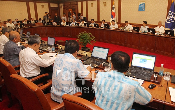국무회의가 열린 19일 오전 서울 세종로 정부중앙청사에서 국무위원들이 반팔차림으로 회의에 참석하고 있다.