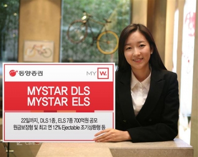 동양증권은 오는 22일까지 나흘간 KODEX레버지리를 기초자산으로 하는 원금보장형 DLS 1종과 KOSPI200, HSCEI, S&P500, 삼성전자를 기초자산으로 하는 원금보장형 ELS 1종 및 고수익 조기 상환이 가능한 원금비보장형 ELS 6종 등 8종의 DLS·ELS 상품을 총 700억원 규모로 공모한다.