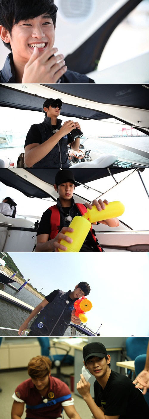 SBS 공식 홈페이지에 공개된 촬영 현장 스틸 사진 속 김수현은 선글라스와 검은색 모자를 착용한 채 미션을 수행하고 있다. 특히 김수현은 물총과 쌍안경을 소지한 채 진지한 태도로 촬영에 임하고 있어 눈길을 끈다.