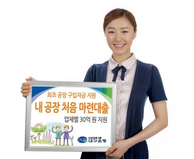 대구은행은 자가 공장을 최초로 구입하고자 하는 중소기업을 대상으로 시설자금과 운전자금을 동시 지원하는 ‘내 공장 처음 마련대출’을 실시한다.