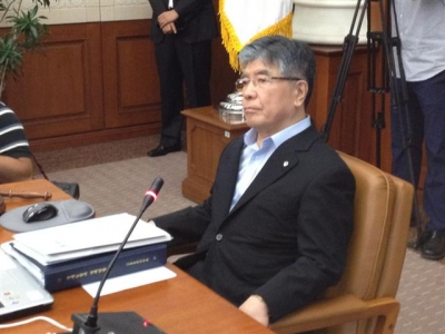 ▲김중수 한국은행 총재가 12일 기준금리 결정을 위한 금융통화위원회를 열기 전 굳은 표정으로 자리에 앉아 있다.