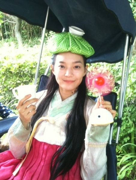 사진 속 신민아는 한복을 차려입은 모습으로 한 손에는 컵, 다른 한 손에는 미니 선풍기를 들고 있다. 특히 머리 위에는 얼음주머니가 올려져 있어 눈길을 끈다.