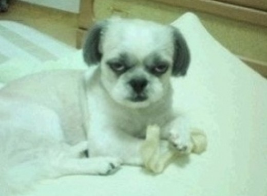 공개된 '나갈 때 엄마의 눈빛' 사진에는 앞발로 개껌을 쥔 채 무서운 눈빛으로 노려보는 강아지의 모습이 담겨있다.