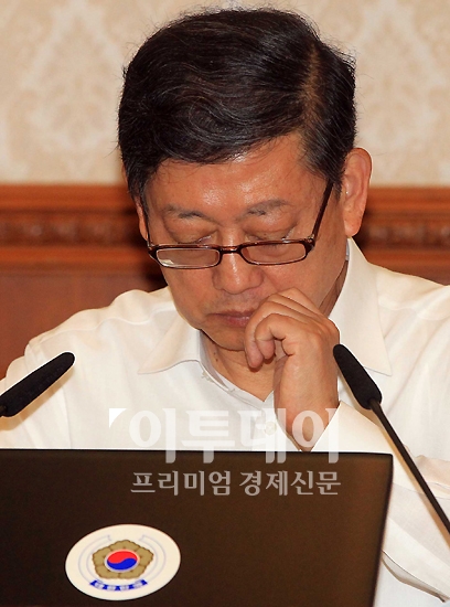 김황식 국무총리가 17일 오전 세종로 정부중앙청사에서 열린 국무회의에 참석해 자료를 검토하고 있다.