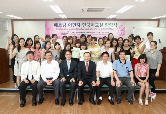 주한베트남 대사관과 주한베트남교민회가 주최하고 금호타이어가 후원하는 한글 교실은 의정부 지역에 거주하는 베트남 이주여성 33명을 대상으로 안정되고 행복한 이민생활을 돕고자 마련됐다