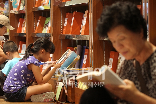 휴가와 여름방학이 한창인 30일 오후 서울 광화문 교보문고에서 시민들이 독서를 하며 휴식을 즐기고 있다.