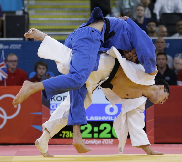 왕기춘은 30일 오후 영국 런던 엑셀노스 아레나에서 열린 2012 런던올림픽 유도 남자 73kg이하급 32강전에서 리낫 이브라기모프(카자흐스탄)를 연장전끝에 꺾고 16강에 올랐다.