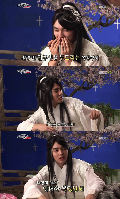 이날 방송에서는 옥황상제 역을 맡은 유승호는 촬영 중간 입 주변을 두드리며 "아침에 수염을 밀었는데 반나절 만에 수염이 자랐다"며 난감해 했다.