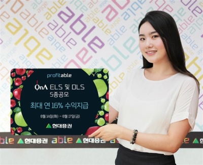 현대증권은 14일부터 17일까지 사흘간(15일 광복절 휴무), 원금비보장형 ELS 4종, 원금비보장형 DLS 1종 등 총 5종의 상품을 250억원 규모로 공모한다고 밝혔다.