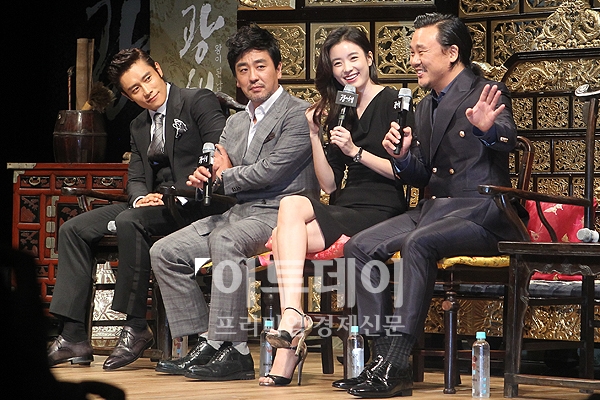 영화 ‘광해’ 제작발표회가 열린 13일 오전 서울 압구정CGV에서 주연배우 이병헌,류승룡,한효주,김인권이 기자들의 질문에 답변을 하고 있다.