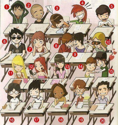 이 그림은 남녀공학 교실의 학생들의 다양한 모습을 묘사해 학교에서 당신의 모습은 어떤 유형에 속하는지 추억을 더듬게 했다. 첫째줄부터 넷째줄까지 각 줄 별로 특성을 잘 드러내 역시 공부에 관심이 많은 학생들이 가장 앞자리에 앉은 모습을 묘사했다. 공부에 전혀 관심이 없는 학생들은 마지막 줄에 앉아 음악을 듣는 학생, 종이비행기로 장난치는 학생, 침을 흘리며 잠자는 학생의 모습을 그렸다. 둘째줄은 화장하는 여학생, 휴대폰으로 통화하는 학생, 사랑에 빠진 학생 모습을 그렸다. 셋째줄은 턱을 고인 여학생, 수다 떠는 학생, 다른 곳을 응시하는 학생 등의 모습을 그려 누리꾼들의 공감을 받았다.