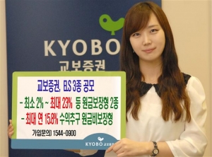 '교보증권 제1277회 ELS'는코스피200지수와 홍콩항셍(HSCEI)지수를 기초자산으로 두 지수중 어느 하나라도 최초기준지수의 130%초과(종가기준)하여 상승한 적이 없고 만기평가가격이 최초기준가격의 100%초과 130% 이하인 경우, 2% 기본보장에 만기평가일에 지수상승률이 낮은 기초자산을 기준으로 지수상승률의 70%에 해당하는 수익률을 더 지급한다.