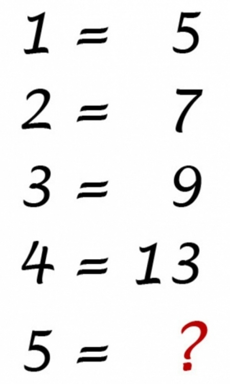 공개된 '생각하면 간단한 문제' 사진에는 '1=5, 2=7, 3=9, 4=13, 5=?'를 묻는 문제가 담겨 있다.