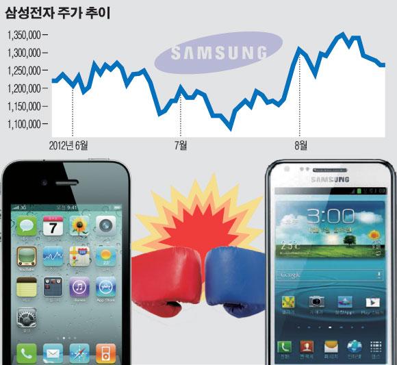 이선태 NH농협증권 연구원도 “소송결과에 따라 주가가 움직이겠지만 소송 리스크를 제외하고는 주가가 싼 편이고 갤럭시노트2 등 3분기 실적 모멘텀이 살아있다”며 “삼성전자의 주가는 소송 결과가 어떻게 나와도 결국 제자리를 찾아갈 것”이라고 내다봤다.