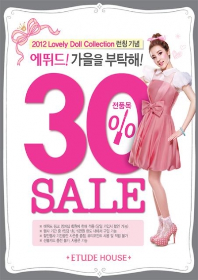 애뛰드하우스가 24일부터 2일간 핑크멤버쉽 회원에게 전 품목을 30% 할인해주는 ‘에뛰드! 가을을 부탁해~! 전 품목 30% 세일'을 실시한다.