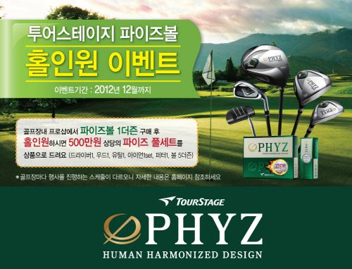 이번 행사는 전국 골프장을 대상으로 진행되며, 이벤트 기간 동안 골프장 내 프로샵에서 파이즈 볼 1더즌을 구매한 후 그 볼로 홀인원을 할 경우 약 500만원 상당의 파이즈 풀세트(드라이버1, 아이언1, 우드1, 유틸1, 퍼터1, 파이즈볼 5더즌)를 상품으로 지급한다.