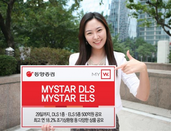 동양증권은 오는 29일까지 KOSPI200, HSCEI, S&P500, 삼성전자, LG전자, 대한항공을 기초자산으로 하는 고수익 조기 상환이 가능한 원금비보장형 ELS 4종과 쿠폰지급형 1종 및 런던금가격지수와 런던은가격지수를 기초자산으로 하는 쿠폰지급형 DLS 1종 등 총 6종의 ELS, DLS 상품을 500억원 규모로 공모