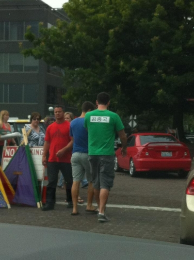 마치 SBS 인기 예능 프로그램 '런닝맨'의 트레이드 마크인 '이름표 떼기'에서 입는 옷과 유사하다는 점에서 누리꾼들은 '시애틀에서 본 런닝맨'이라는 제목을 붙였다.
