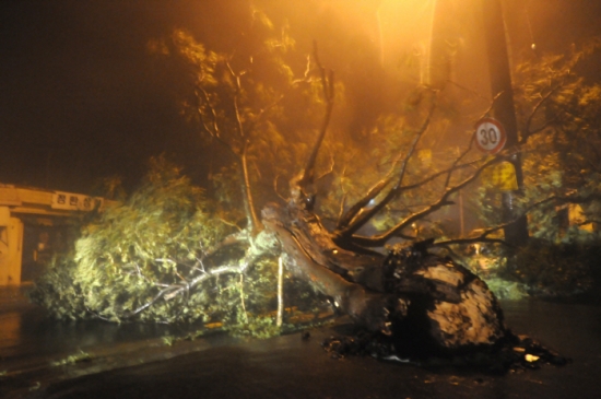 제 15호 태풍 '볼라벤'이 제주도 지역을 강타한 가운데 서귀포시 대정읍 도로변의 팽이나무가 힘없이 부러진 채 도로를 덮쳤다.