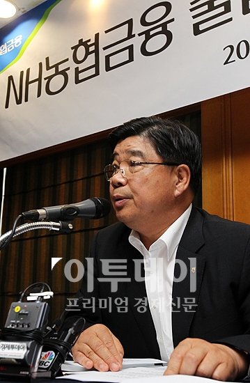 취임 두 달째를 맞은 신동규 NH농협금융지주 회장이 28일 서울 중구 명동 은행회관에서 열린 기자간담회에 참석해 모두발언을 하고 있다.