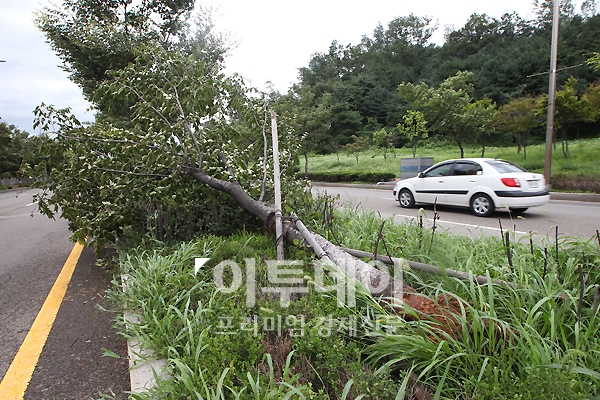 [포토]제15호 태풍 볼라벤의 위력, '뿌리째 뽑힌 가로수'
