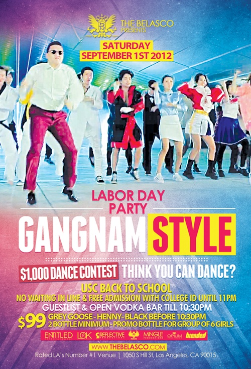 미국 로스앤젤레스 벨라스코 극장은 공식 홈페이지를 통해 다음달 1일 '강남스타일 파티'라는 이름의 말춤 경연대회를 진행할 것으로 알려졌다. 우승자 상금은 1000달러(한화 약 120만원).
