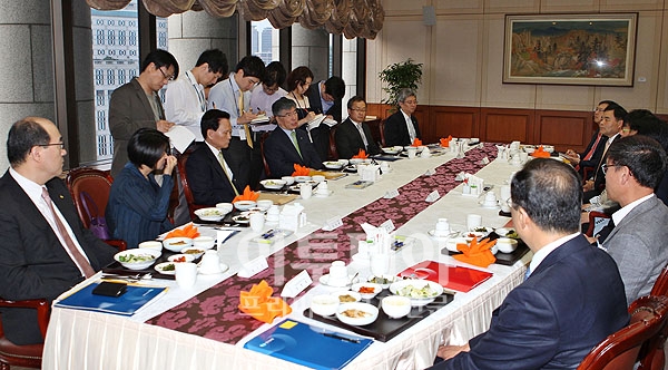 김중수 한국은행 총재가 19일 오전 서울 중구 한국은행에서 열린 '중소기업 CEO와 간담회'에서 인사말을 하고 있다. 방인권기자 bink7119@