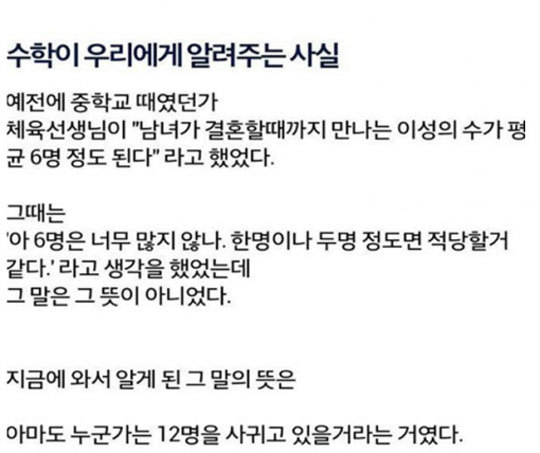 ▲수학이 우리에게 알려주는 사실(사진=온라인 커뮤니티)
