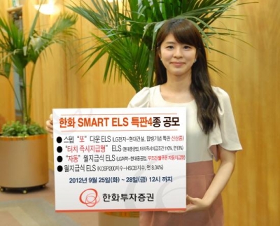 ‘한화스마트ELS 2009호’는 기존 월지급식 ELS의 월지급조건을 삭제해 상환 전까지는 무조건 월수익을 자동지급하는 (월쿠폰 보장형) ‘자동 월지급식’ ELS 로 기초자산은 ‘LG화학’과 ‘현대중공업’이며 3년 만기로 운용되고 별도의 월수익지급조건없이 상환 완료 전까지는 매월 0.85%(연10.2%)의 월수익이 지급된다.