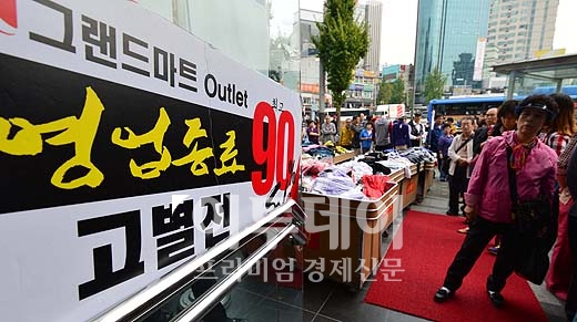경기 침체의 어두운 그림자가 사회 전반으로 번지고 있는 가운데 5일 오전 서울 신촌의 상징이었던 그랜드 백화점 폐점 고별세일에 이른 아침부터 고객들이 몰려들고 있다.