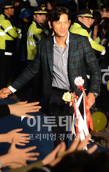 배우 오지호가 5일 오후 부산 해운대 BIFF 빌리지에서 열린 제17회 APAN 스타로드 블루카펫 행사에서 시민들의 환영을 받으며 입장하고 있다.