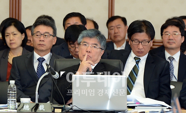 [포토]한국은행 국정감사, 생각에 잠긴 김중수 총재