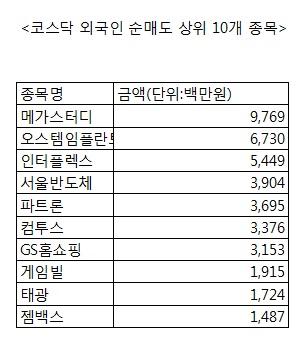 9일 코스닥시장 외국인 순매도 상위 10개 종목