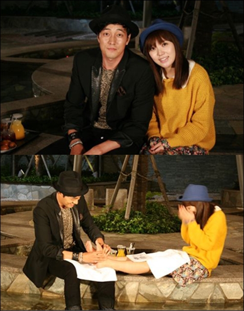 공개된 사진에는 늦은 밤 부산 한 찜질방에서 소지섭이 하지영의 발 마사지를 해주는 모습이 담겨 있다.
