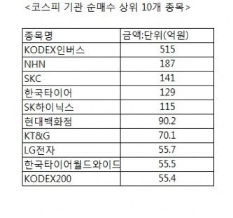 10일 코스피시장 기관 순매수 상위 10개 종목