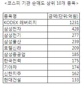 10일 코스피시장 기관 순매도 상위 10개 종목