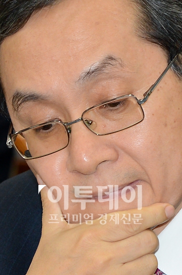 김동수 공정거래위원장이 11일 오전 여의도 국회에서 열린 정무위원회 공정위 국정감사에 출석해 자료를 검토하고 있다.