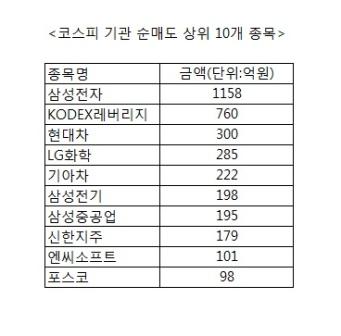 11일 코스피시장 기관 순매도 10개 종목