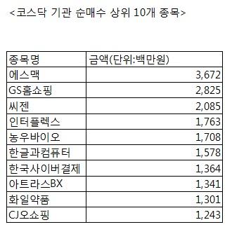 11일 코스닥시장 기관 순매수 상위 10개 종목