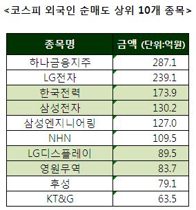 [코스피 외국인 순매도 상위 10개 종목]