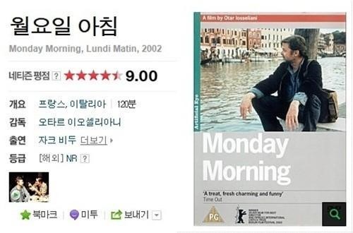 제목은 ‘월요일 아침(Monday Morning)’ 해방구가 보이지 않는 중년 노동자의 이야기로, 내용은 코믹물이지만 제목은 섬찟하다. 한가로운 주말에 월요일을 상상하는 자체만으로 공포감을 조성한다는 평가다.