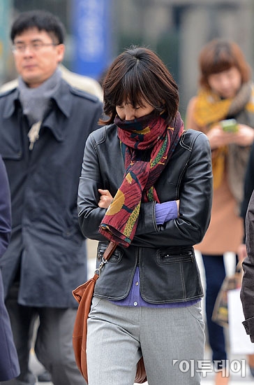 초 겨울 날씨를 보인 31일 오전 서울 광화문네거리에서 시민들이 몸을 움츠린채 출근길을 서두르고 있다.