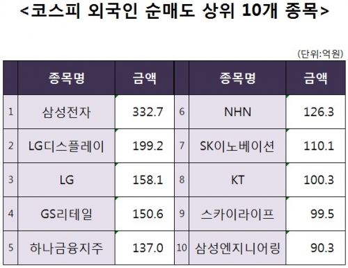 [코스피 외국인 순매도 상위 10개 종목]