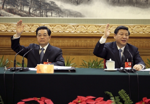 중국 공산당 제18차 전국대표대회(당대회)가 8일(현지시간) 개막했다. 이번 당대회에서 시진핑 국가 부주석이 당 총서기로 오르는 등 10년 만의 권력 교체가 이뤄진다. 사진은 시진핑(오른쪽) 부주석과 후진타오 주석이 7일 18차 당대회 주석단 회의에 참석한 모습. 베이징/AP연합뉴스