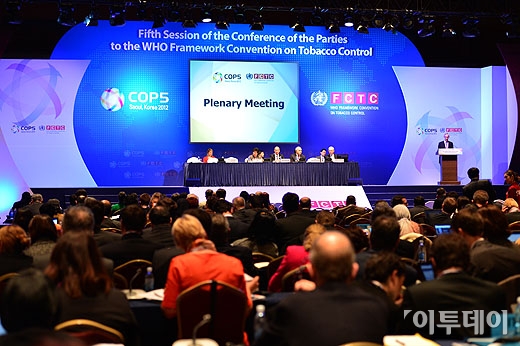 세계보건기구(WHO) 담배규제기본협약(FCTC) 제5차 당사국 총회 개회식이 12일 오전 서울 코엑스에서 열렸다. 행사에 참석한 각국 참석자들이 회의를 경청하고 있다.