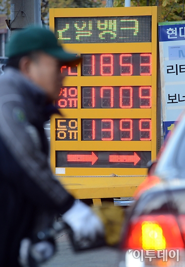 주유소 휘발유 판매 가격이 두 달 연속 하락세를 보이고 있다. 유가정보사이트 오피넷의 자료에 따르면 12일 주유소 휘발유 판매 가격은 리터당 1959원으로 올 하반기 들어 가장 낮은 가격을 기록했다. 13일 오전 서울 영등포구 도림동의 한 주유소 가격 안내판에 휘발유 가격이 1853원을 나타내고 있다.